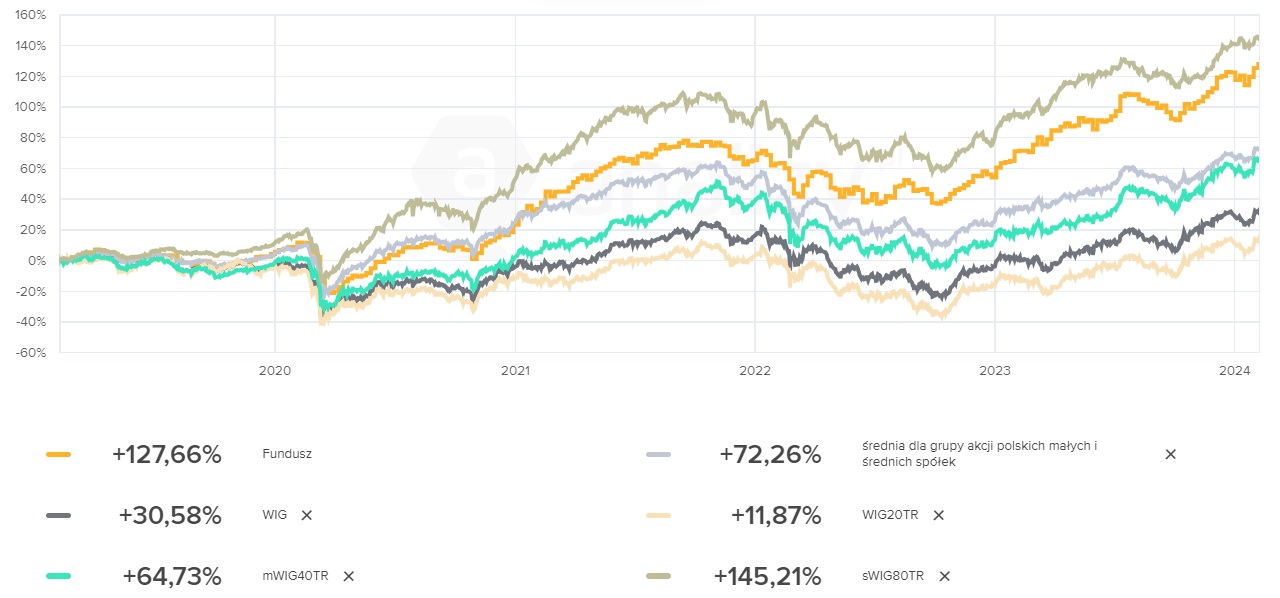 4. AGIO Akcji Małych i Średnich Spółek (+127,7 proc.)
