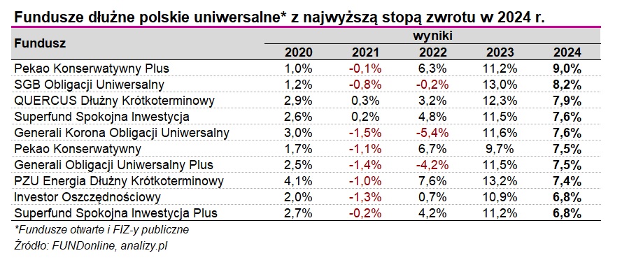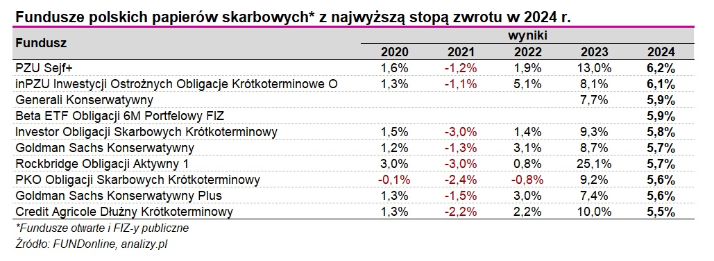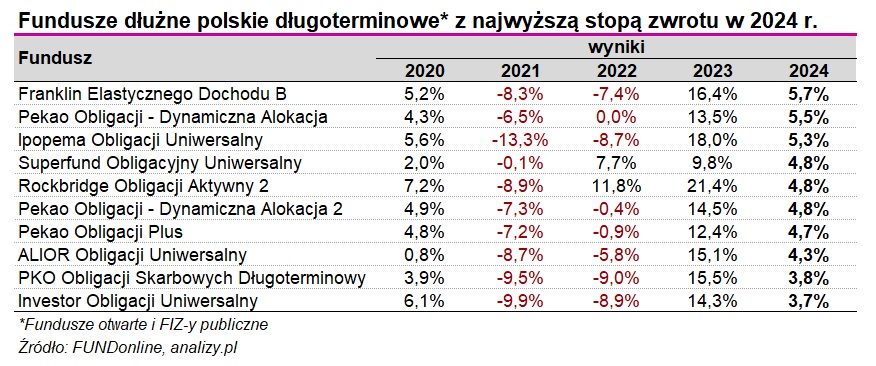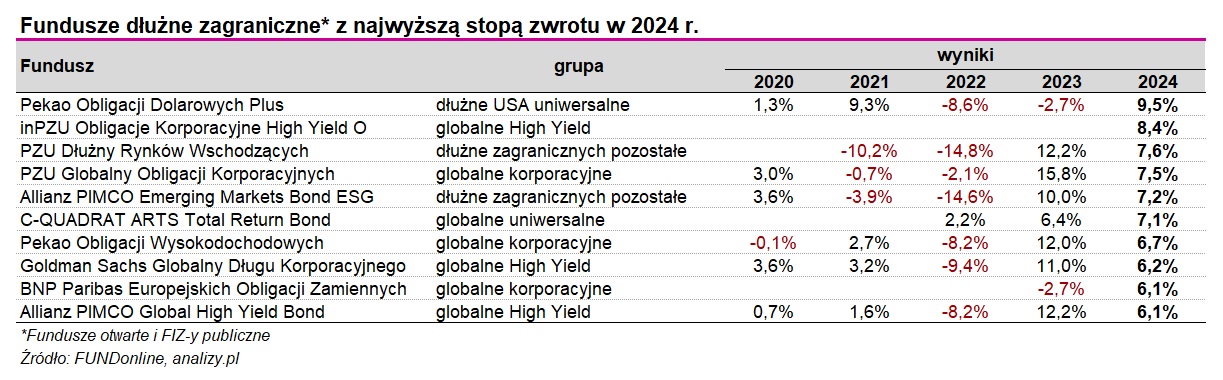 Żaden z funduszy dłużnych inwestujących w Polsce nie zanotował w 2024 r. straty.