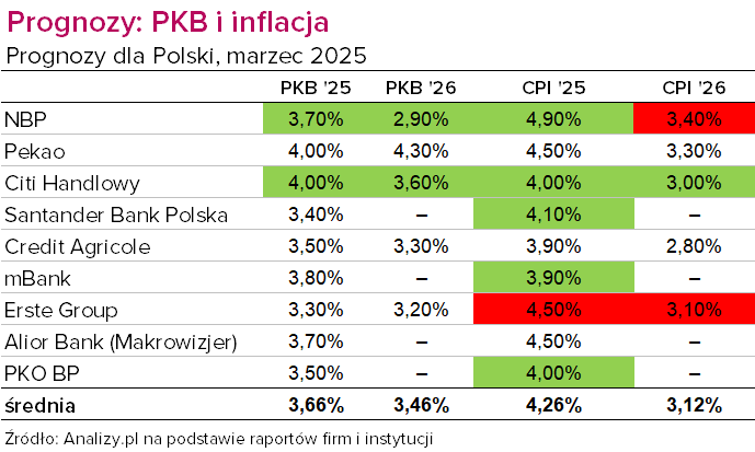 Prognozy PKB i inflacji na 2025 i 2026 rok (marzec 2025)