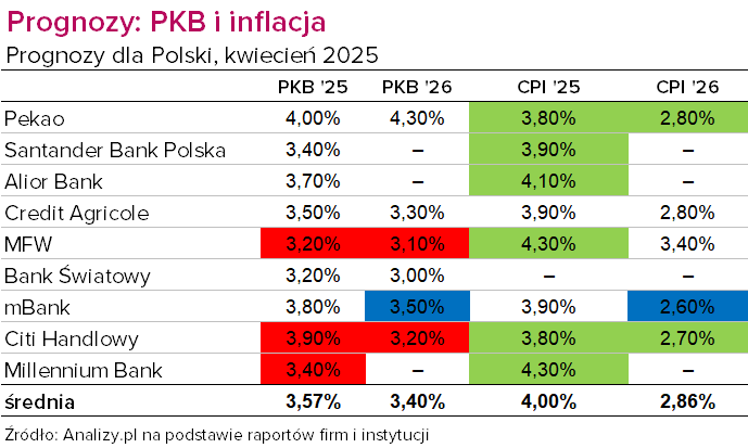 Prognozy PKB i inflacji na 2025 i 2026 rok (kwiecień 2025)
