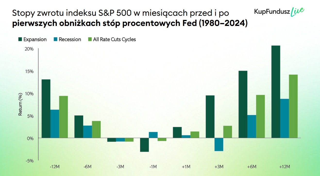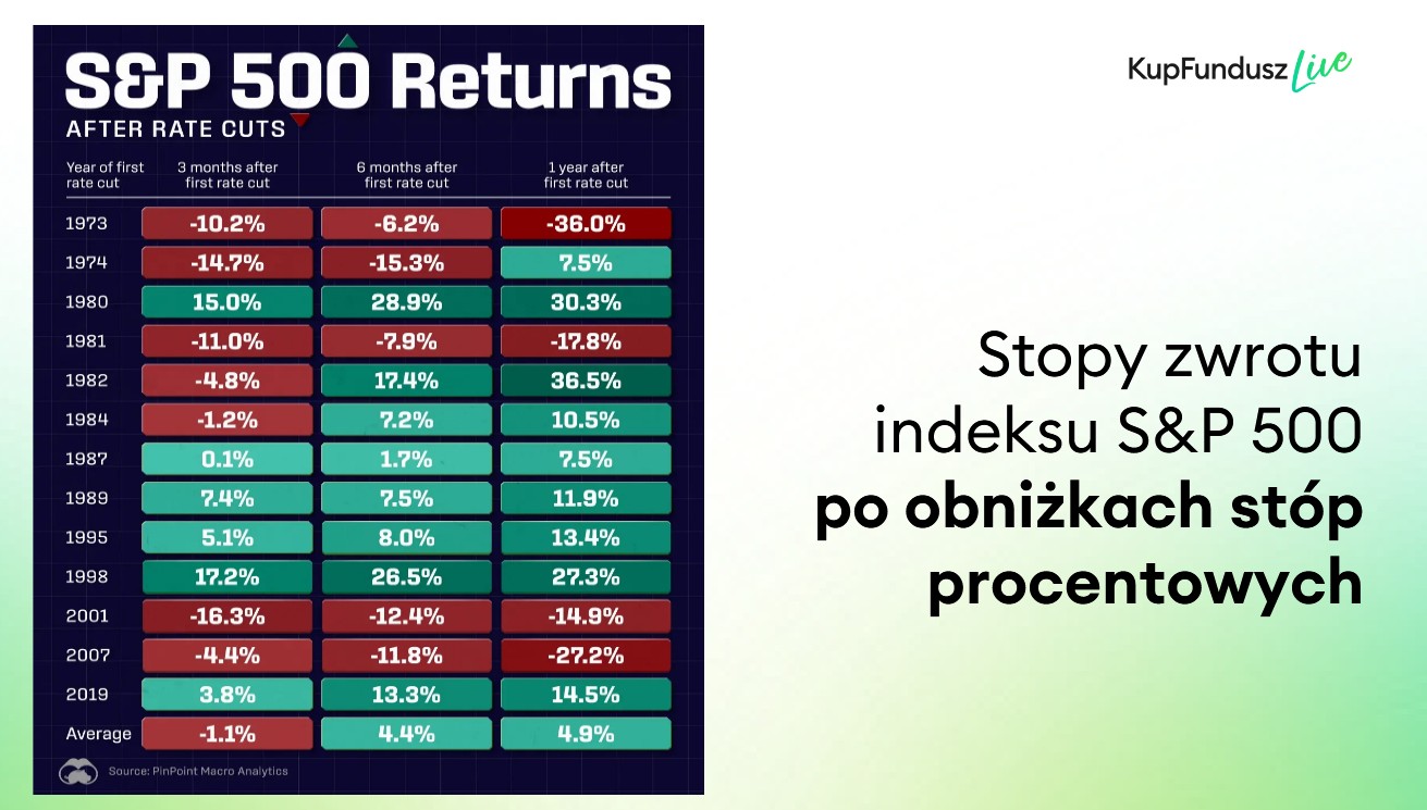 Historycznie na trzy miesiące przed rozpoczęciem obniżek zwykle były spadki, trzy miesiące po już tylko w razie recesji, a sześć miesięcy po wszystkie były na plusie, o ile nie było dużego załamania.