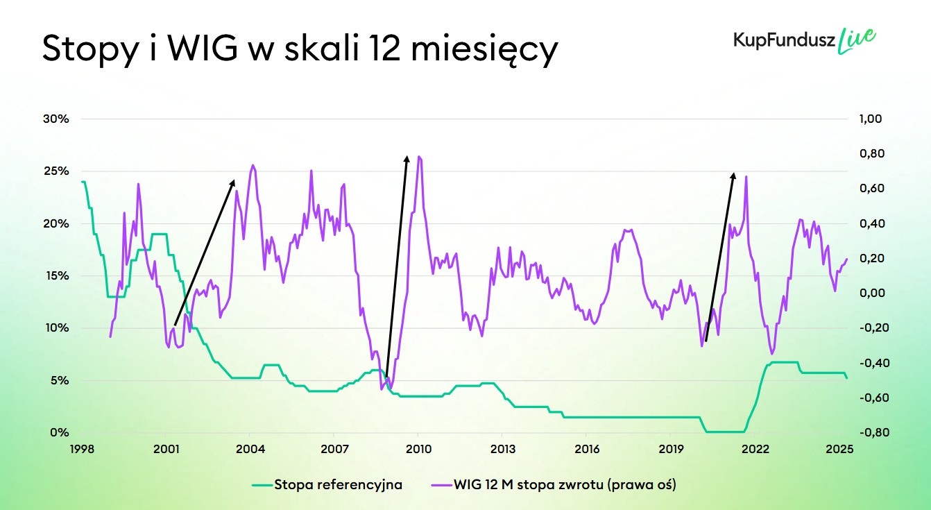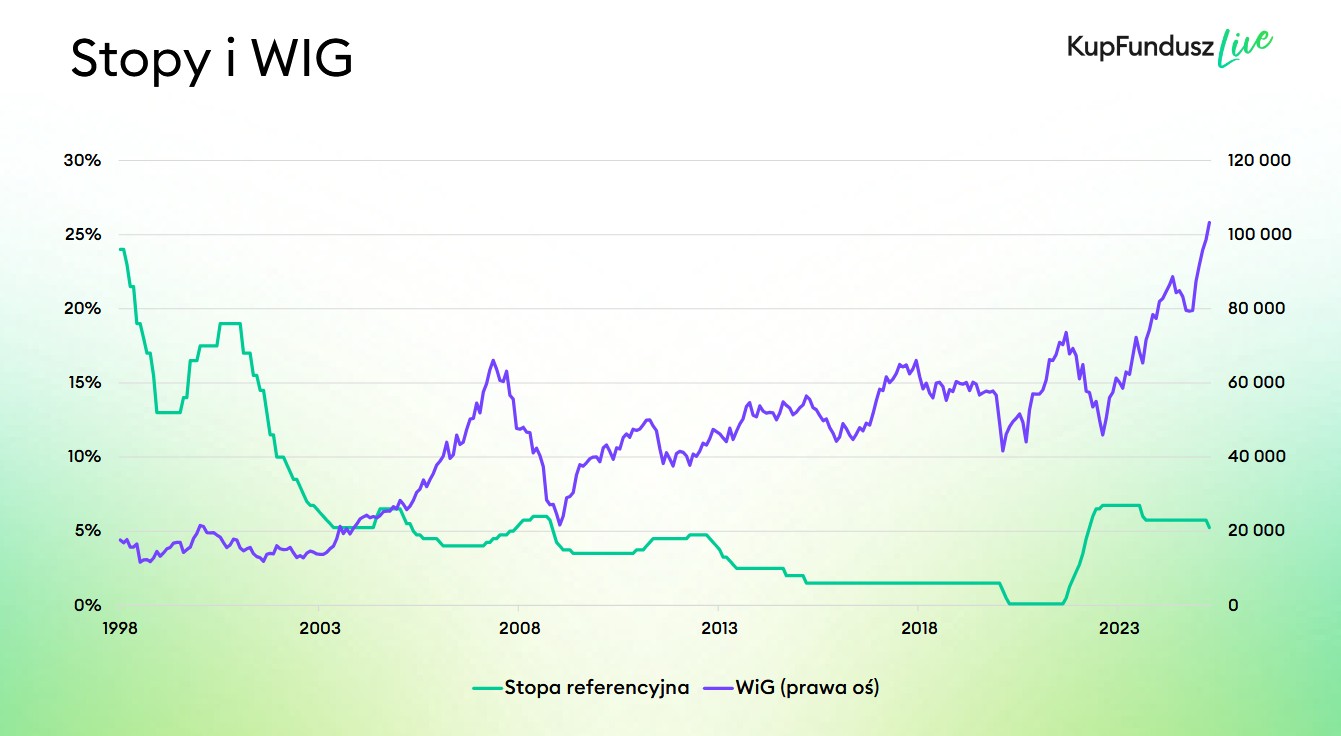 Wielka hossa na GPW zaczęła się po 2003 roku. Częściowo była to konsekwencja przystąpienia do UE w maju 2004 roku, ale warto zwrócić uwagę, że w okresie poprzedzającym tę hossę stopy procentowe mocno spadły. Hossa trwała do II połowy 2007 roku, kiedy to kres położył jej wielki kryzys finansowy. W 2012 roku RPP podnosiła stopy, m.in. wskutek wzrostu inflacji po Euro 2012; EBC również przeprowadziła wówczas podwyżki stóp, okazało się później, że był to błąd w obu przypadkach.