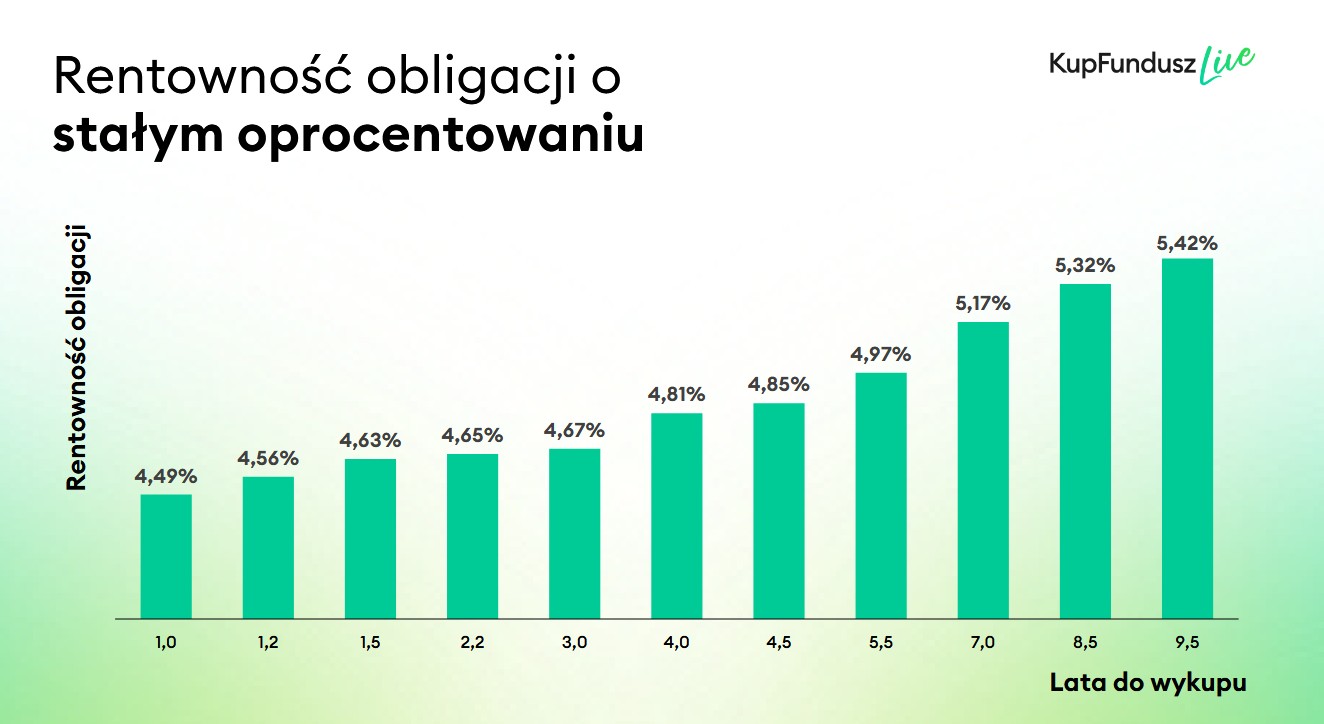 W przypadku obligacji o stałym oprocentowaniu w tej chwili roczne (liczymy czas do wykupu) dają 4,5%, a najdłuższe, niemal 10-letnie – ponad 5,4%. Taki wybór mają w tej chwili zarządzający.