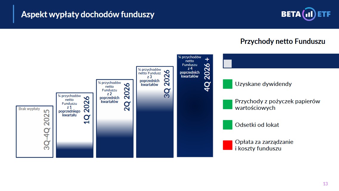 Wypłaty dochodów funduszu będą realizowane kwartalnie, co zapewnia regularność przepływów pieniężnych.