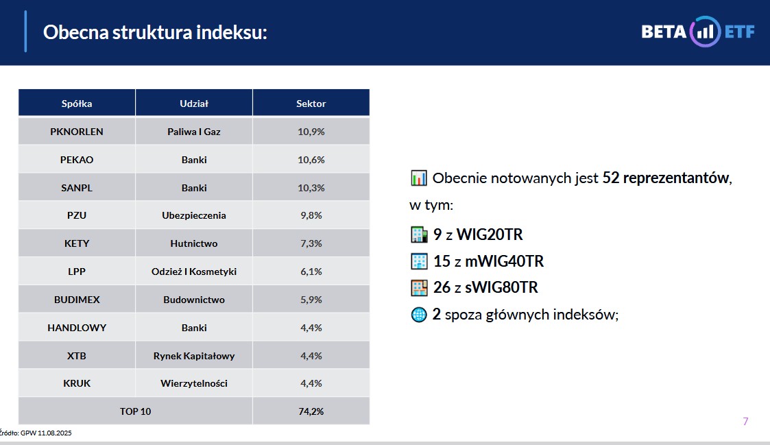 W skład BETA ETF Dywidenda Plus będą wchodzić te same spółki, co do WIG140, a wśród nich 3/4 stanowią spółki dywidendowe z WIG20.