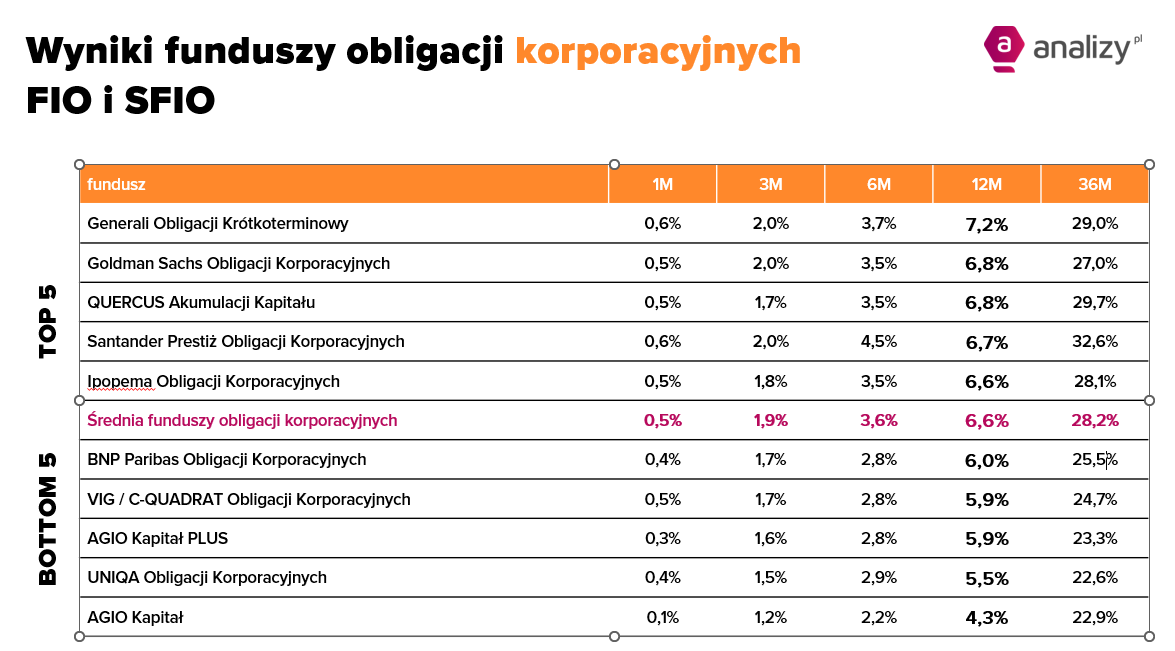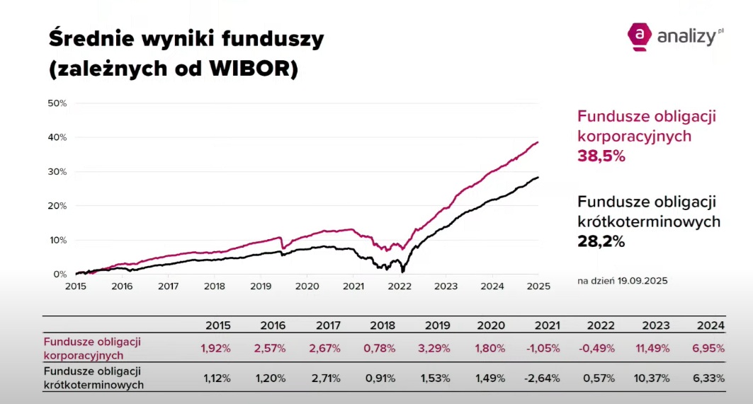 Wyniki funduszy obligacji korporacyjnych w Polsce także zależą w dużej mierze od WIBOR-u, podczas gdy globalnie takie fundusze inwestują najczęściej w obligacje o stałym oprocentowaniu. Fundusze obligacji korporacyjnych oferują potencjalnie wyższe zyski (WIBOR + marża), ale także wyższe ryzyko kredytowe. Zarówno w obligacje korporacyjne, jak i w private debt nie da się jednak zainwestować w sposób indeksowy (pasywny).