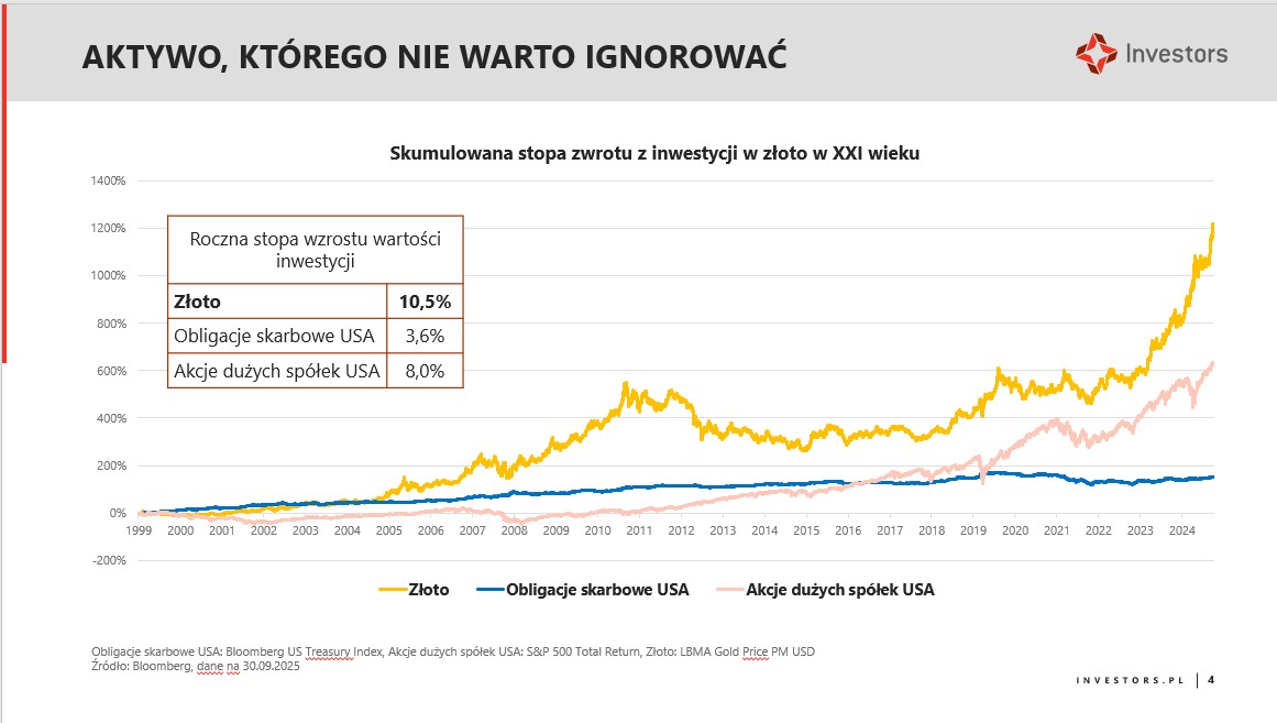 Dane dotyczące stóp zwrotu w XXI wieku jednoznacznie pokazują, że złoto było jedną z najbardziej dochodowych klas aktywów, co podważa tezę o jego bezwartościowości w nowoczesnym portfelu.
