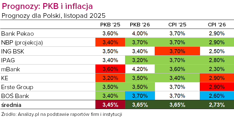 Prognozy PKB i inflacji (listopad 2025) – coraz lepsze widoki na 2026 rok