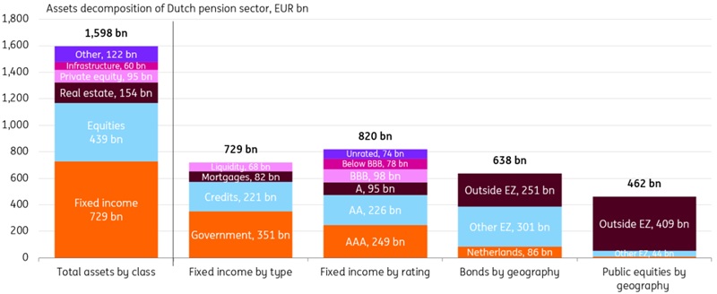 Skala przepływów może być ogromna. Według danych Europejskiego Banku Centralnego holenderskie fundusze emerytalne posiadają aż 65 proc. obligacji skarbowych znajdujących się w portfelach funduszy emerytalnych strefy euro. Analitycy ING szacują, że 1 stycznia 2026 r. aż 550 mld euro aktywów może przejść do nowego systemu, co uruchomi istotną redukcję pozycji w obligacjach i swapach o bardzo długich terminach zapadalności. Jednocześnie popyt na instrumenty o zapadalności krótszej niż 20 lat może nawet wzrosnąć, ponieważ nowy system umożliwia zabezpieczanie ryzyka stopy procentowej według kohort wiekowych.