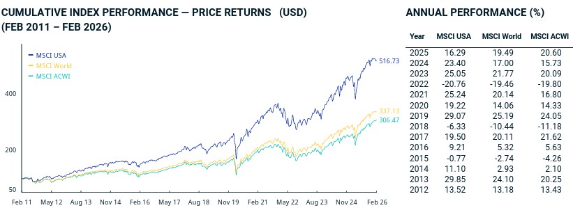 Amerykański rynek akcji pozostaje największym i najważniejszym rynkiem giełdowym świata, zarówno pod względem kapitalizacji, jak i liczby innowacyjnych, globalnych spółek. To tam notowane są globalne firmy z sektorów technologii, finansów, ochrony zdrowia, przemysłu i konsumpcji. USA to także silna gospodarka (ok. 25% światowego PKB), a także stabilne i regulowane otoczenie rynkowe – przejrzyste zasady działania rynku kapitałowego zwiększają zaufanie inwestorów. Również długoterminowe wyniki indeksu MSCI USA pozostają jednymi z najlepszych wśród rynków rozwiniętych.